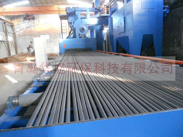 鋼筋拋丸清理機主要用于鋼筋、線材、圓鋼、棒材去除掉其上的銹層、焊渣及氧化皮,使之獲得均勻一致的金屬光澤,以提高鋼材的涂飾質量與防腐效果。在鋼筋線材及制品行業已引起足夠的重視,被認為是取代酸洗最值得信賴的技術。